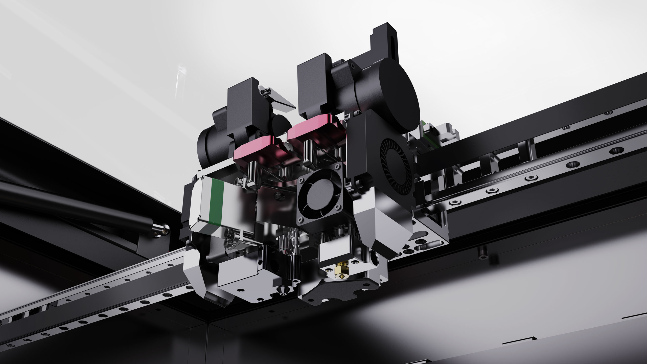 S5系列拥有500*500*600mm打印尺寸,主动舱温,多轴平台,快拆式双独立挤出机,打印头温度最高可达500℃,可在FFF和连续纤维打印之间一键切换。更重要的是,基于深度开源的Klipper系统,满足客制化需要。